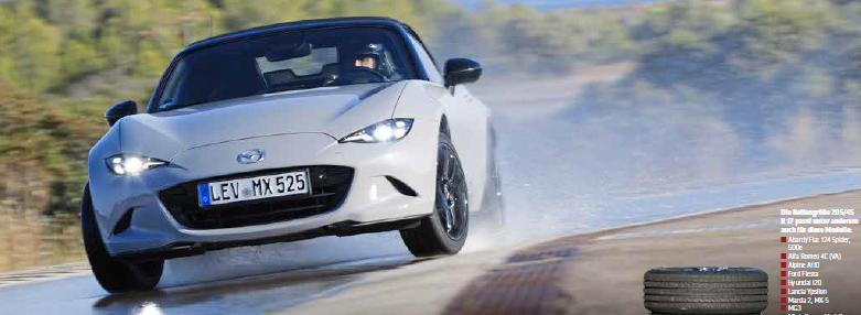 In der Ausgabe 4/2026 testete die deutsche Fachzeitschrift sport auto sieben Sommerreifen der Größe 205/45 R 17 auf einem Mazda MX-5. Die Testreihe umfasste Premium-Sport-, Touring- und Budget-Reifen: Bridgestone Potenza Sport evo, Goodyear Eagle F1 Asymmetric 6, Falken Azenis FK520, Continental PremiumContact 7, Michelin Pilot Sport 5, Linglong Sport Master und Firestone Roadhawk 2. Die Reifen wurden hinsichtlich ihrer Fahreigenschaften bei Nässe und Trockenheit sowie ihres Komforts und ihrer Effizienz bewertet.
